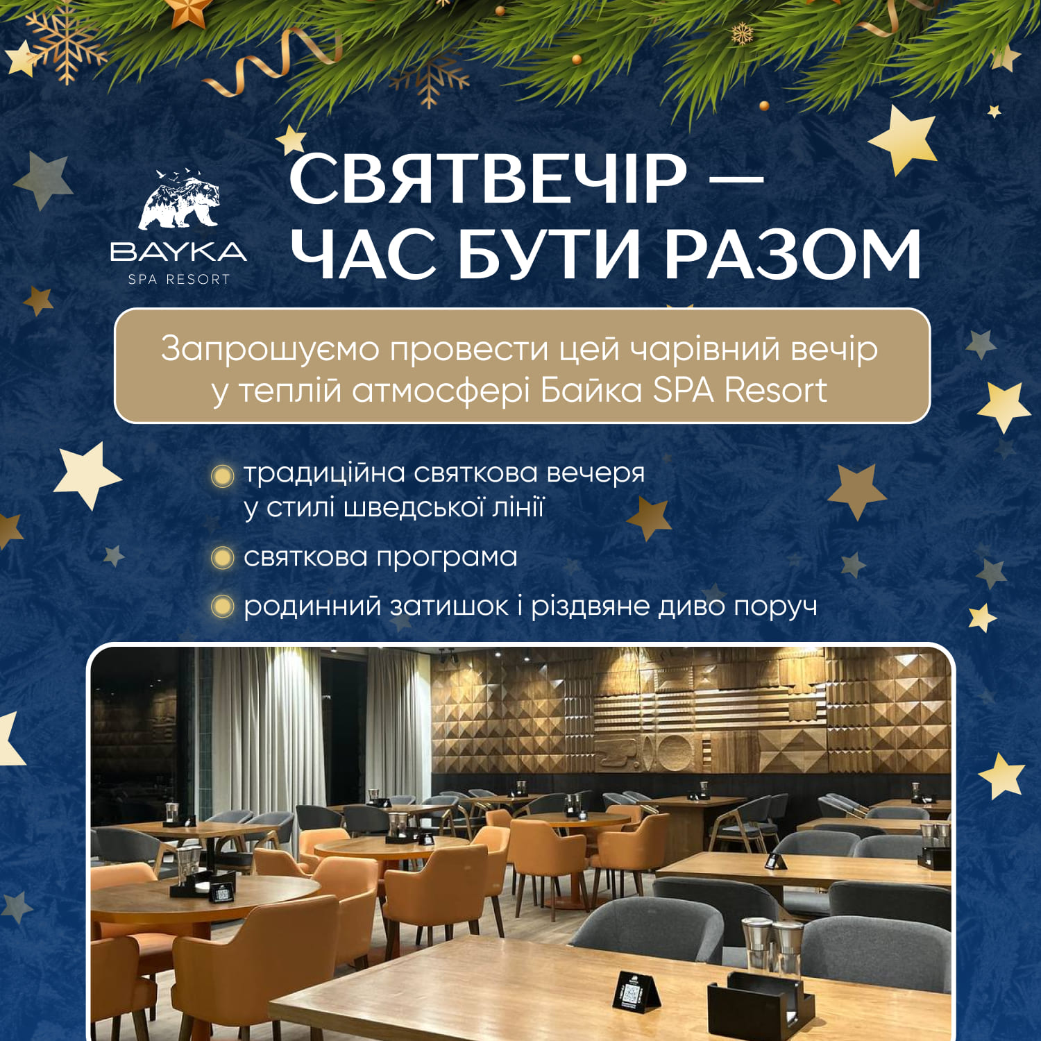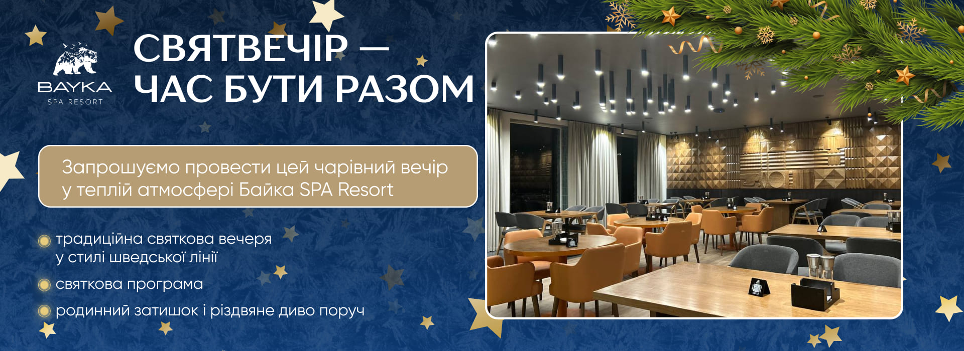 Романтичний вечір, ділову зустріч чи урочисту подію проведіть у ресторані, бенкетній залі.