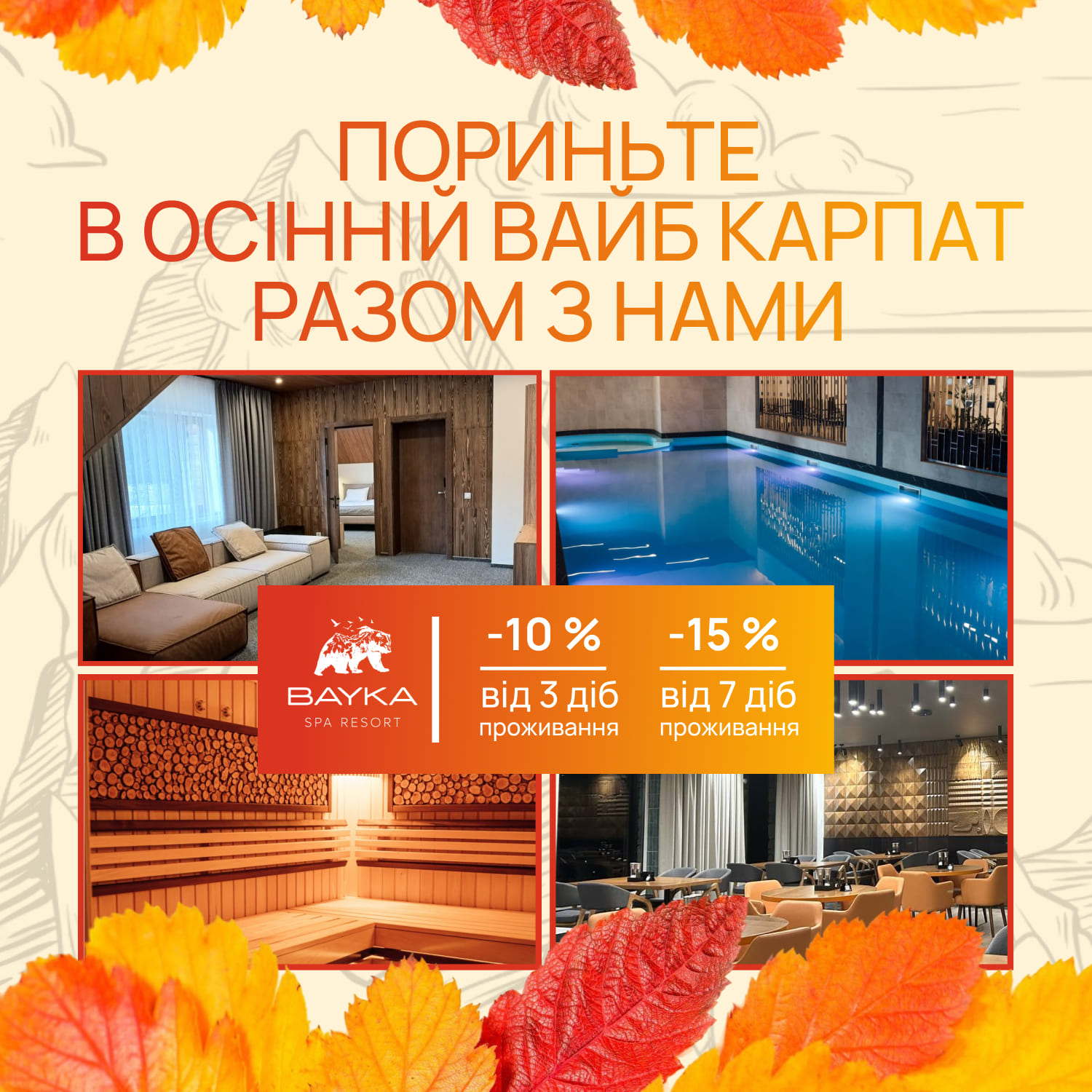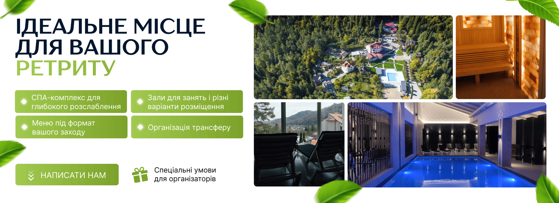 Після прогулянок розслабитися допоможе басейн, масаж, фінська сауна.