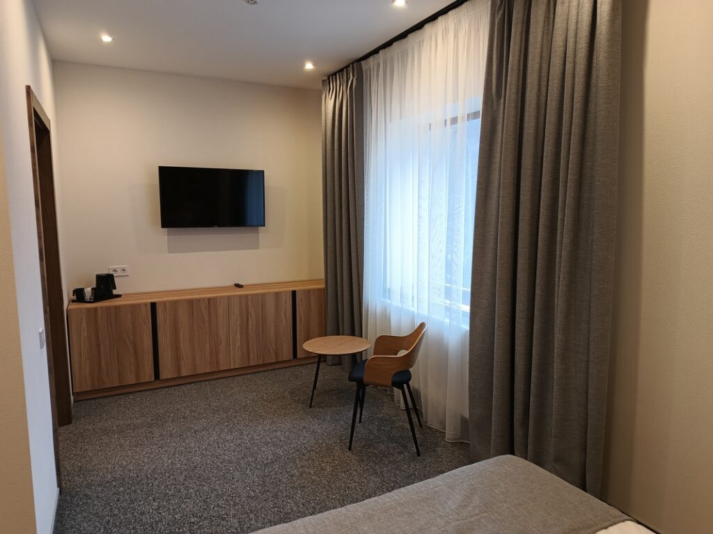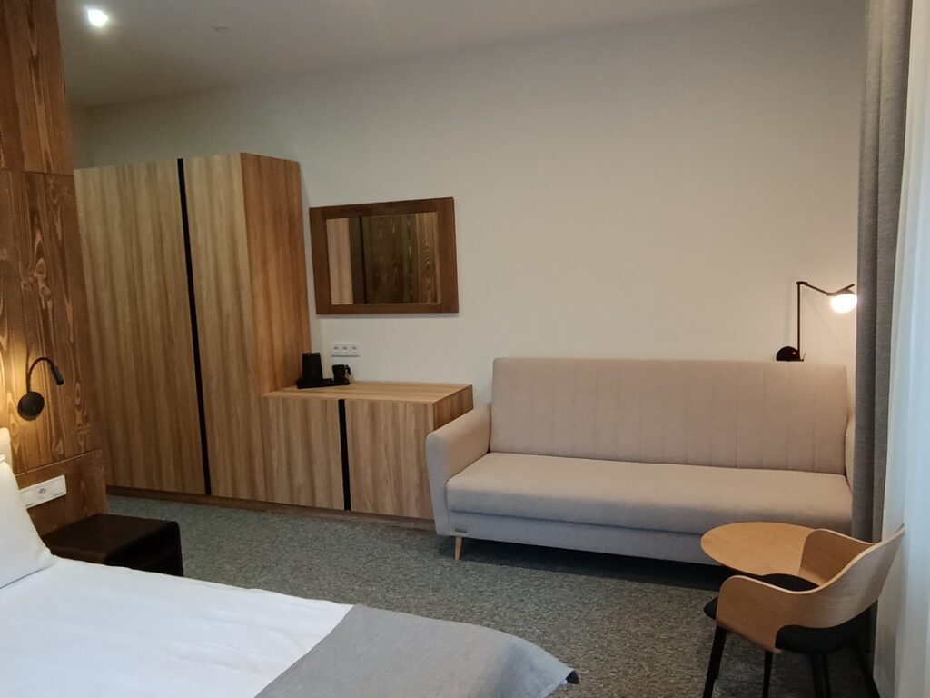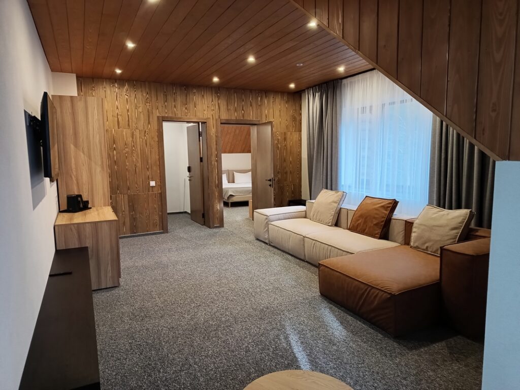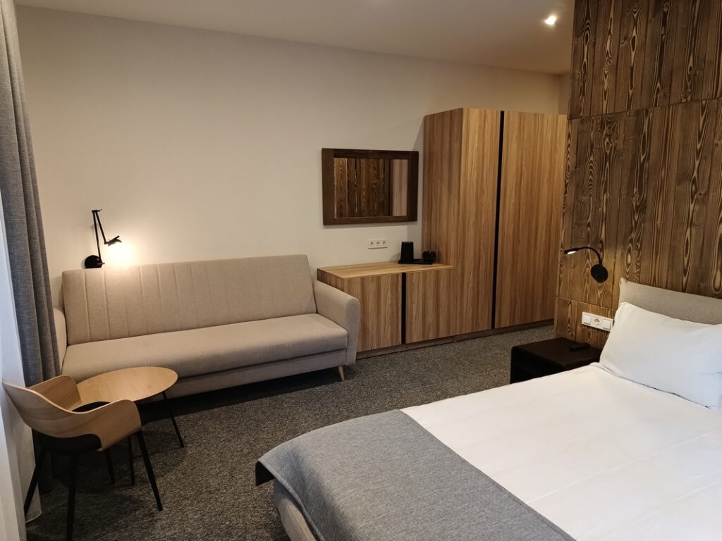 Двокімнатні номери з повним санвузлом (душова кабіна або ванна) в основному корпусі готелю зі стандартним розміщенням 2-х осіб. Вітальня укомплектована диваном, який може використовуватись як додаткове спальне місце. Усі номери мають безкоштовний доступ до Wi-Fi.