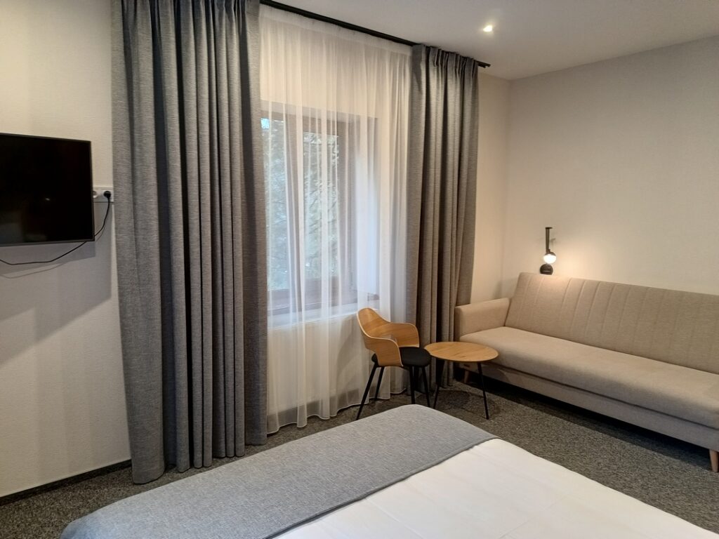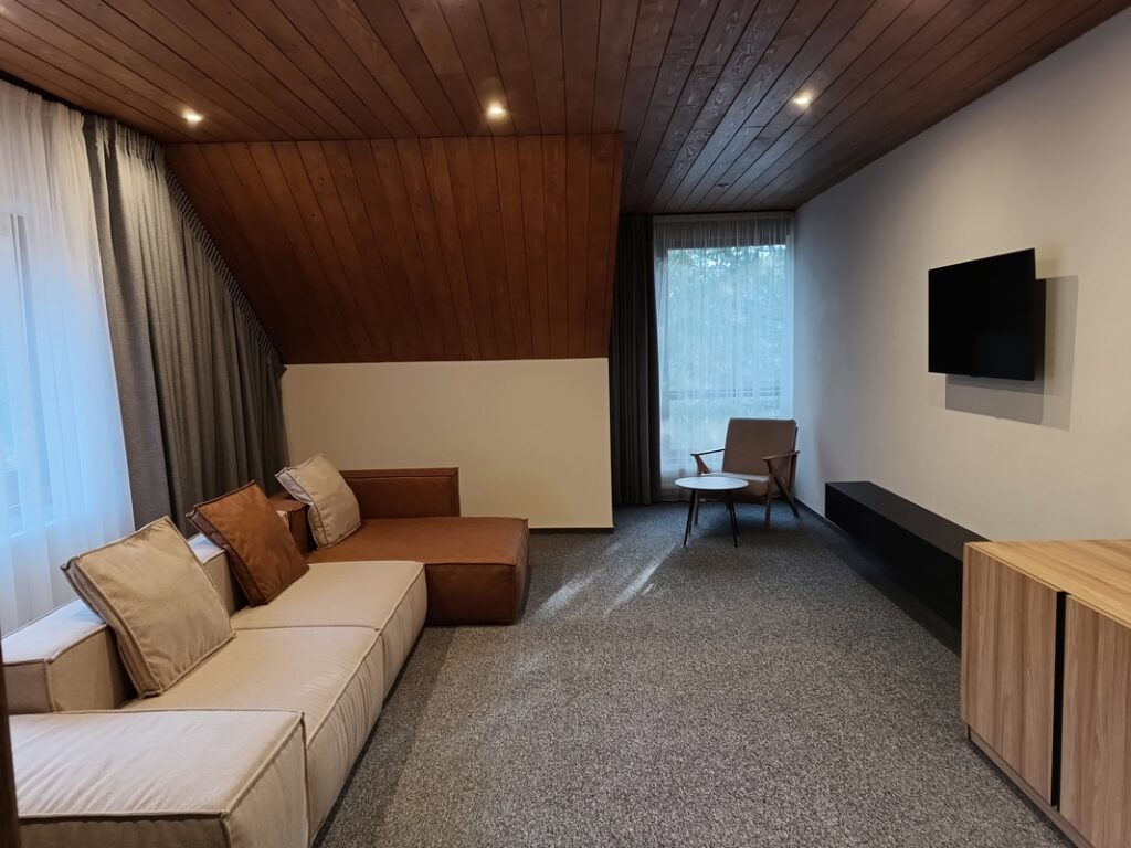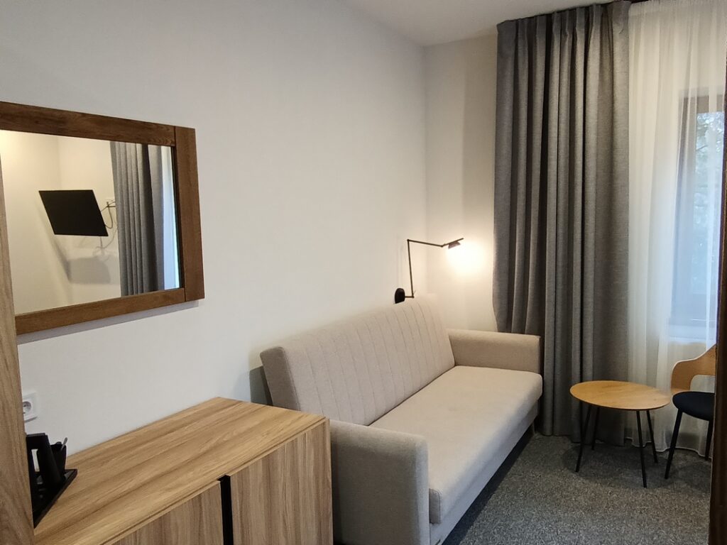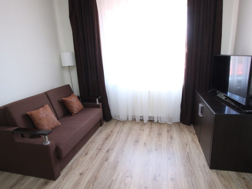 Двокімнатні номери з повним санвузлом (душова кабіна або ванна) в основному корпусі готелю зі стандартним розміщенням 2-х осіб. Вітальня укомплектована диваном, який може використовуватись як додаткове спальне місце. Усі номери мають безкоштовний доступ до Wi-Fi.
