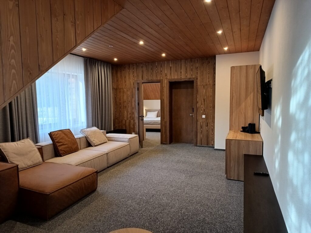 Двокімнатні номери підвищеної комфортності з повним санвузлом (душова кабіна) в основному корпусі готелю зі стандартним розміщенням 2-х осіб. Вітальня укомплектована диваном, який може використовуватись як додаткове спальне місце. Усі номери мають безкоштовний доступ до Wi-Fi.
